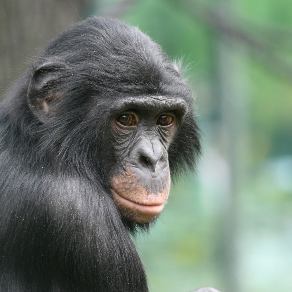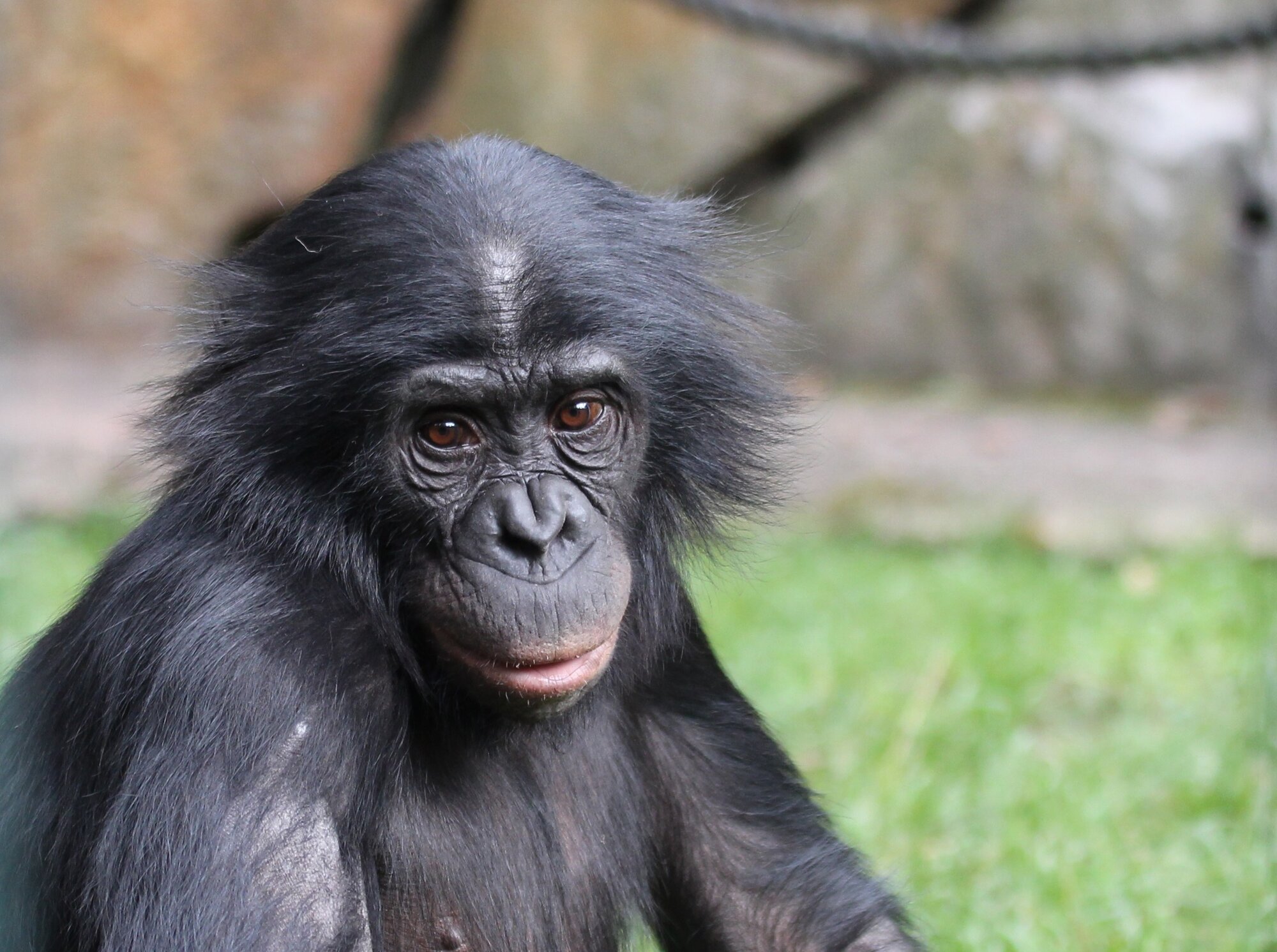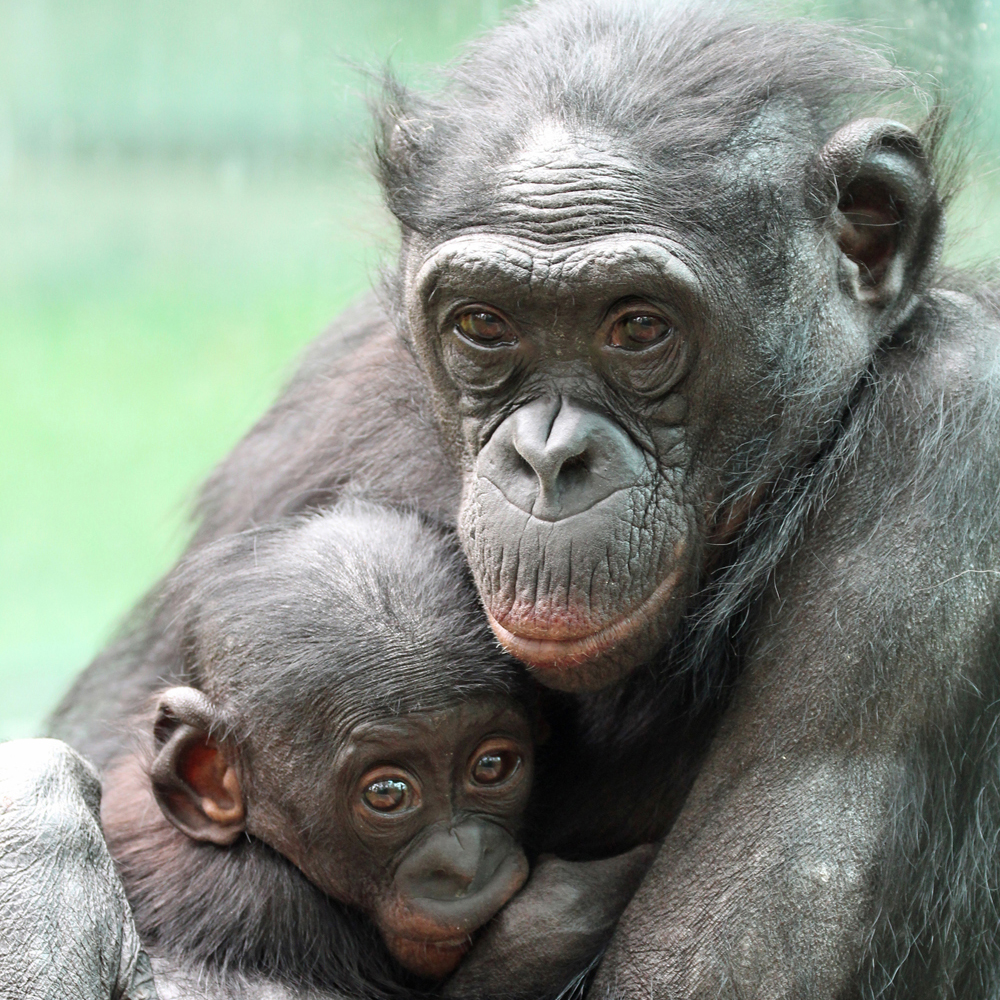 Bonobos sind neben den Schimpansen unsere nächsten Verwandten. Die geselligen Allesfresser verzehren neben Früchten, Nüssen und Blättern gelegentlich auch Insekten und kleine Wirbeltiere. Im Gegensatz zu Schimpansen leben Bonobos übrigens im Matriarchat: Obwohl die Männchen kräftiger sind, lehnen sie sich nicht gegen die Weibchen auf. Im Zoo Berlin verbleiben die Bonobo-Damen Likemba (7), Opala (18) und ihr Jungtier Leki (2) sowie das Bonobo-Männchen Santi (35).