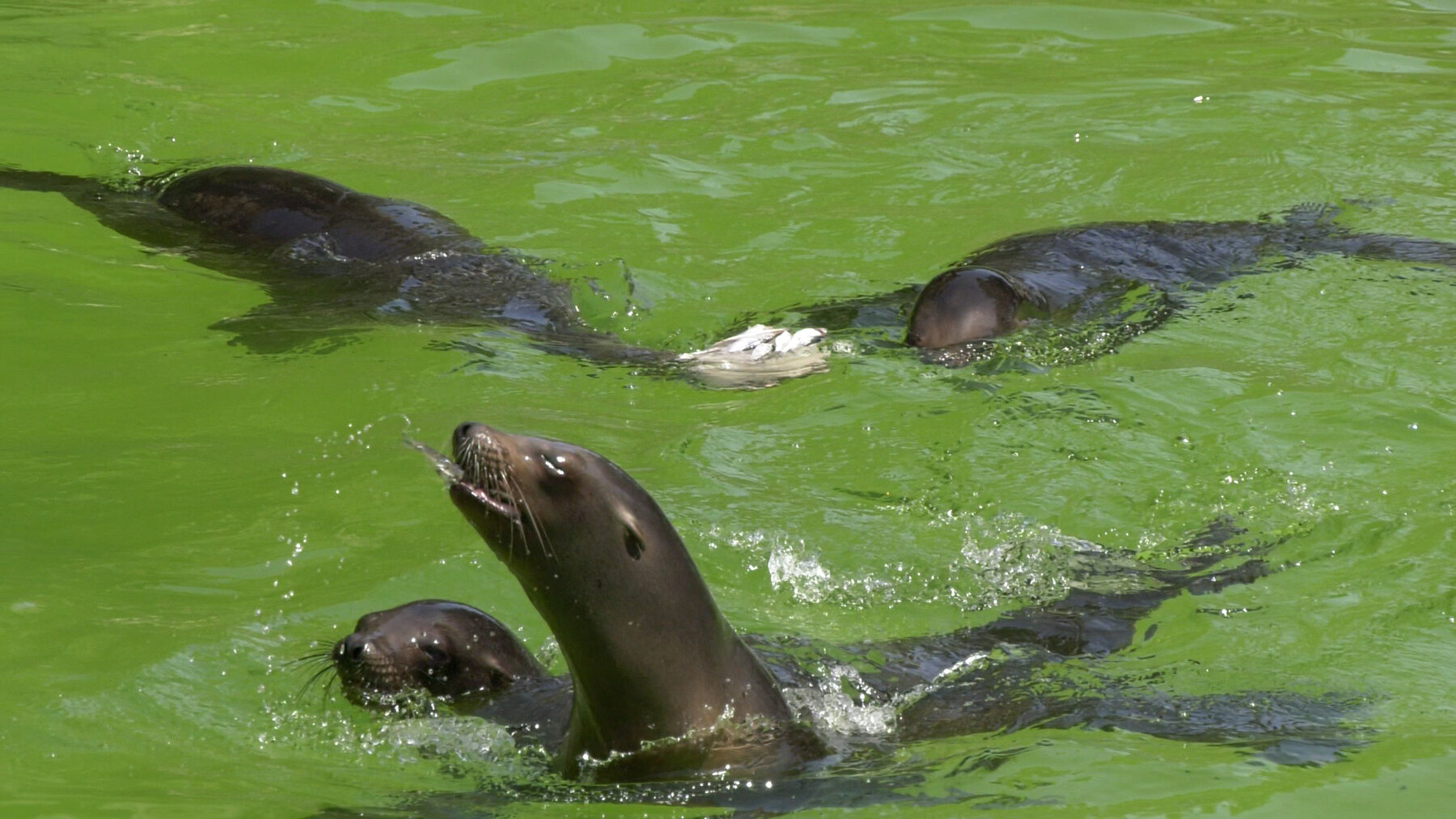Die Tierpfleger haben unsere Seelöwen mit fischigen Eisbomben überrascht.