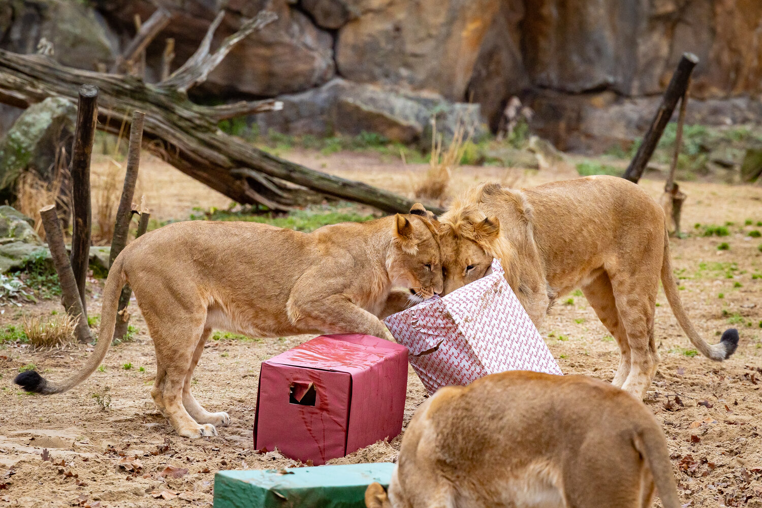 Für die Geschwister gab es drei riesengroße Geschenke - gefüllt mit saftigem Rindfleisch. Wie Sie sich sicherlich vorstellen können, blieb davon nichts übrig.