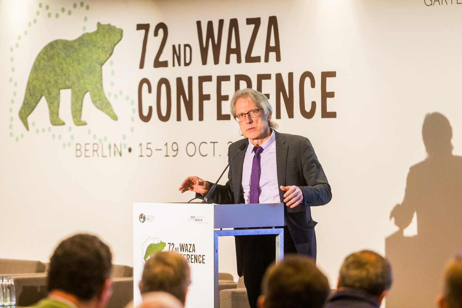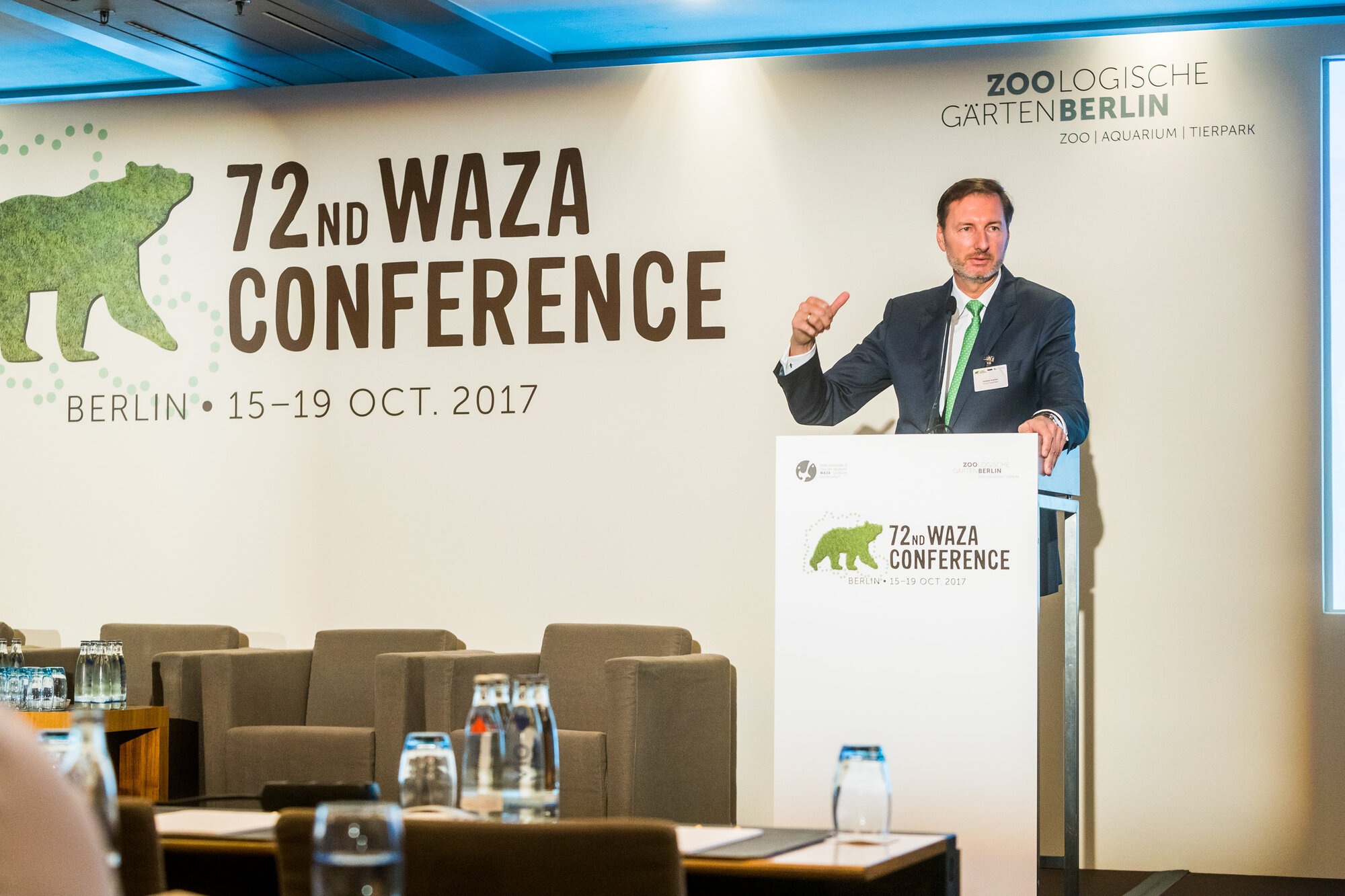Nach Indien (2014), den Vereinigten Arabischen Emiraten (2015) und Mexico (2016), wurde Berlin ein wenig früher als ursprünglich geplant als Austragungsort ausgewählt. „Wir – die Zoologischen Gärten von Berlin – sind sehr stolz darauf, die Expertise aus der ganzen Welt mit dieser Veranstaltung bei uns begrüßen zu dürfen. Gemeinsam wollen wir dieses Zusammentreffen nutzen, um unsere Best-Practice-Beispiele miteinander zu teilen und konkrete Ziele für die Zukunft zu stecken. Wir sind uns unserer Verantwortung bewusst“, verkündet Zoo- und Tierparkdirektor Dr. Andreas Knieriem zu Beginn der Veranstaltung. Doug Cress, WAZA Chief Executive Officer, fügt hinzu: "Zoos und Aquarien sind Vorreiter in Artenschutzbemühungen und die WAZA möchte ihren Einfluss nutzen, um so viele Mitglieder wie möglich dazu aufzurufen, bis 2023 auf Plastik und nicht nachhaltiges Palmöl zu verzichten.“ Auch der Finanzsenator des Landes Berlin, Dr. Matthias Kollatz-Ahnen, unterstrich in seinem Grußwort die positive Entwicklung der vergangenen Jahrzehnte und begrüßte das stetige Streben nach Fortschritt.