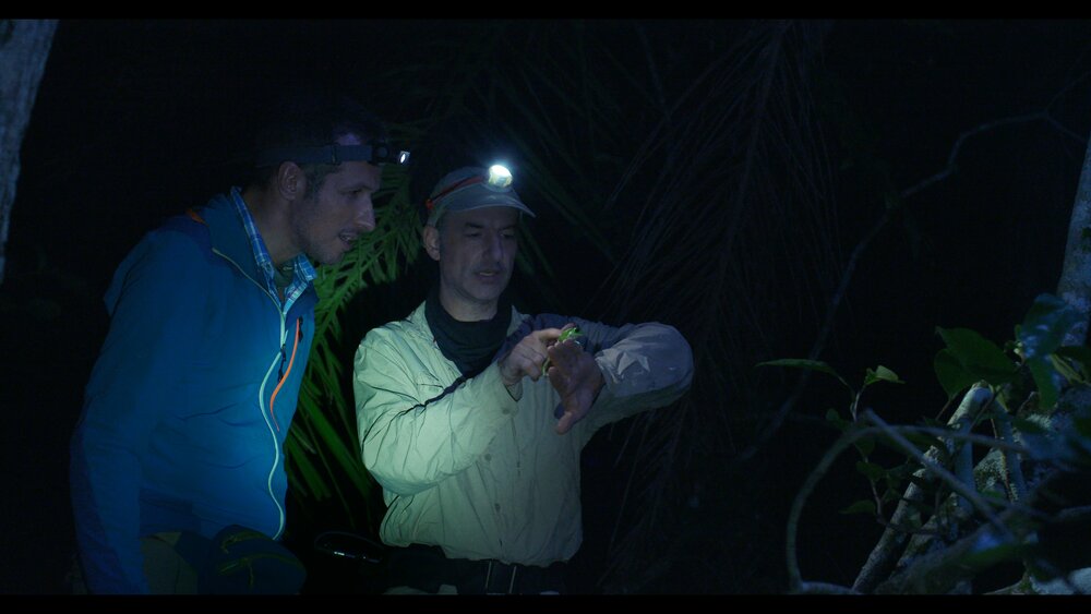 W.W.: Das Senckenberg Forschungsinstitut und Naturmuseum in Frankfurt betreibt in einem abgelegenen Winkel Boliviens eine Forschungsstation. Mit Dr. Martin Jansen habe ich dort nächtliche Wanderungen durch den Sumpf unternommen. Das hat mir einigen Mut abverlangt - Stichwort Vogelspinne, Kaiman, Giftschlange, Jaguar. Aber ich habe dort ein sagenhaftes Frosch-Konzert erleben dürfen. Es war wie im Paradies! Dabei habe ich gemerkt, dass Frösche nicht nur quaken, sondern auch pfeifen, knattern oder wie ein Rennauto klingen. Unser Tonmeister stand die halbe Nacht dort draußen und ich bin froh, dass all diese Töne dann auch im Kinosaal über die Lautsprecher zu hören sein werden. Quak.