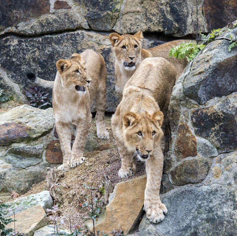 Die historische Löwenanlage von 1936 wurde in den vergangenen Monaten modernisiert, nun erkundeten die drei jungen Löwen neugierig das einer Savannenlandschaft nachempfundene und rund 1.200 qm große Areal. Die neu geschaffenen Felshöhlen – welche nicht nur Schutz bei rauer Witterung bieten, sondern sich auch prima als Kletterfelsen und Aussichtsplattform eignen – sind beheizt und bieten den Großkatzen draußen auch an kälteren Tagen eine Rückzugsmöglichkeit. Der Zugang zum Haus bleibt dennoch geöffnet, sodass sich die Löwen bei Bedarf in die warmen Innenanlagen begeben können. „Die drei Löwen haben sich gut bei uns eingelebt und sind – dass muss ich an dieser Stelle mal zugeben – einfach bezaubernd“, verkündet Dr. Andreas Knieriem anlässlich des ersten Ausflugs der drei Löwen. „Mit den jungen Halbstarken kommt richtig Leben in die Bude und wir können es kaum erwarten das modernisierte Raubtierhaus auch für unsere Gäste zu öffnen“, ergänzt er. Die Eröffnung des „Reich der Jäger“ mit Sibirischem Tiger, Jaguar & Co. ist für kommendes Jahr geplant.