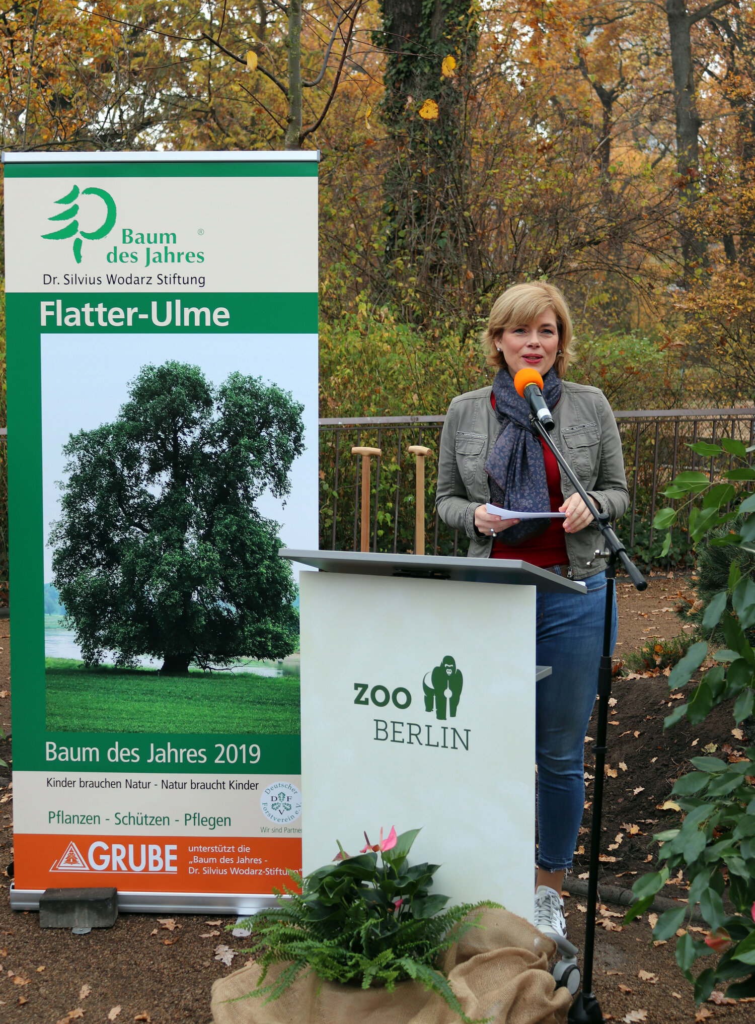 Bei Wind lässt die Flatter-Ulme ihre buschigen Blüten namengebend „tanzen“. Wie auch andere Ulmenarten bevorzugt sie zudem feuchten Untergrund, ist jedoch ebenfalls in trockeneren Gebieten zu finden. Zwar ist die Ulmus laevis – so die wissenschaftliche Bezeichnung der Flatter-Ulme – deutlich widerstandsfähiger gegen die Ulmenkrankheit als z.B. die bekannteren Berg- und Feld-Ulmen, dennoch ist sie in Deutschland nur selten anzutreffen. „Durch die Trockenlegung von Feuchtgebieten verlieren neben einigen Tierarten auch viele Pflanzenarten ihren Lebensraum“, erklärt Zoo- und Tierparkdirektor Dr. Andreas Knieriem. „Wir freuen uns zusammen mit der Stiftung Baum des Jahres noch mehr Menschen für den Schutz der Natur vor der eigenen Haustür zu sensibilisieren.“ Die neue Deutsche Baumkönigin, Caroline Hensel, wird im kommenden Jahr als Botschafterin für die Flatter-Ulme in ganz Deutschland unterwegs sein. Darüber hinaus wird Bundesministerin Julia Klöckner die Schirmherrschaft der Stiftung Baum des Jahres übernehmen.