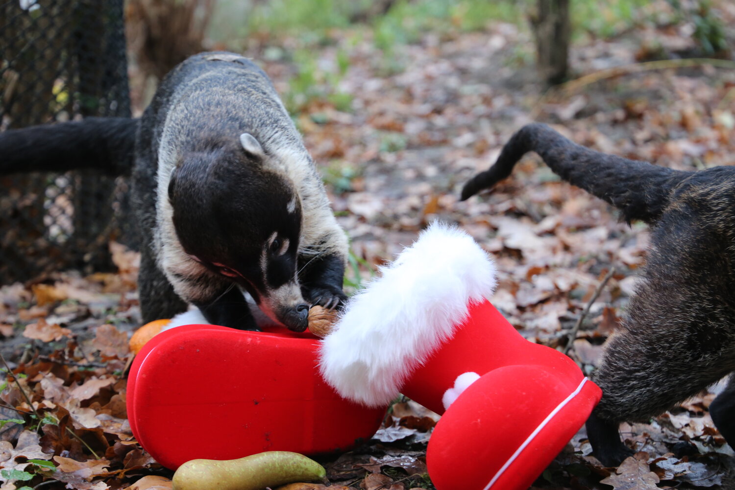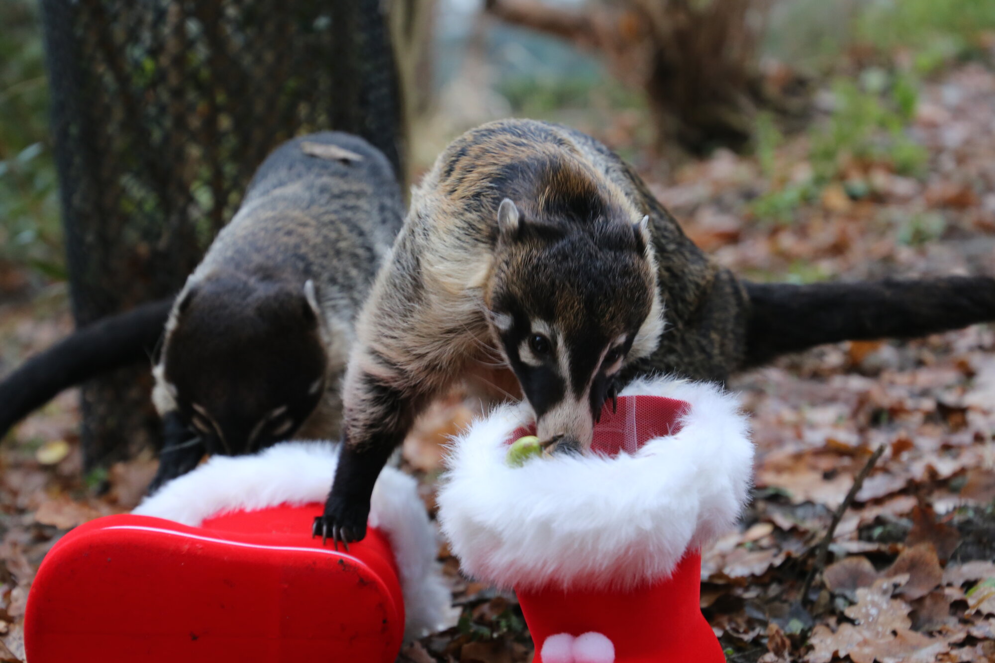 Heute Morgen haben wir unsere beiden Weißrüssel-Nasenbären Frida und Kahlo überrascht. Für wen haben Sie die Stiefel gefüllt?