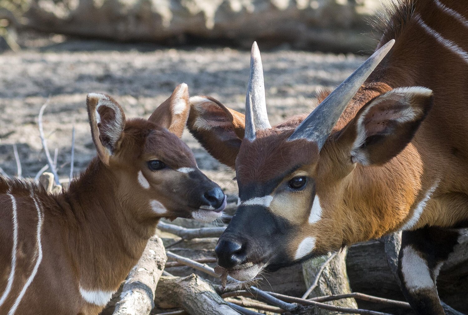 „Der kleine Kirk-Dikdik-Bock war anfänglich relativ scheu und wollte den Stall partout nicht verlassen. Also haben wir dem Glück ein wenig auf die Sprünge geholfen und ihn sanft nach draußen getragen“, so Kurator Dr. Tobias Rahde. „Nala hingegen hat direkt die Neugier gepackt. Das Bongo-Mädchen hat an der Seite ihrer Eltern den Ausflug sehr genossen“, ergänzt Rahde.