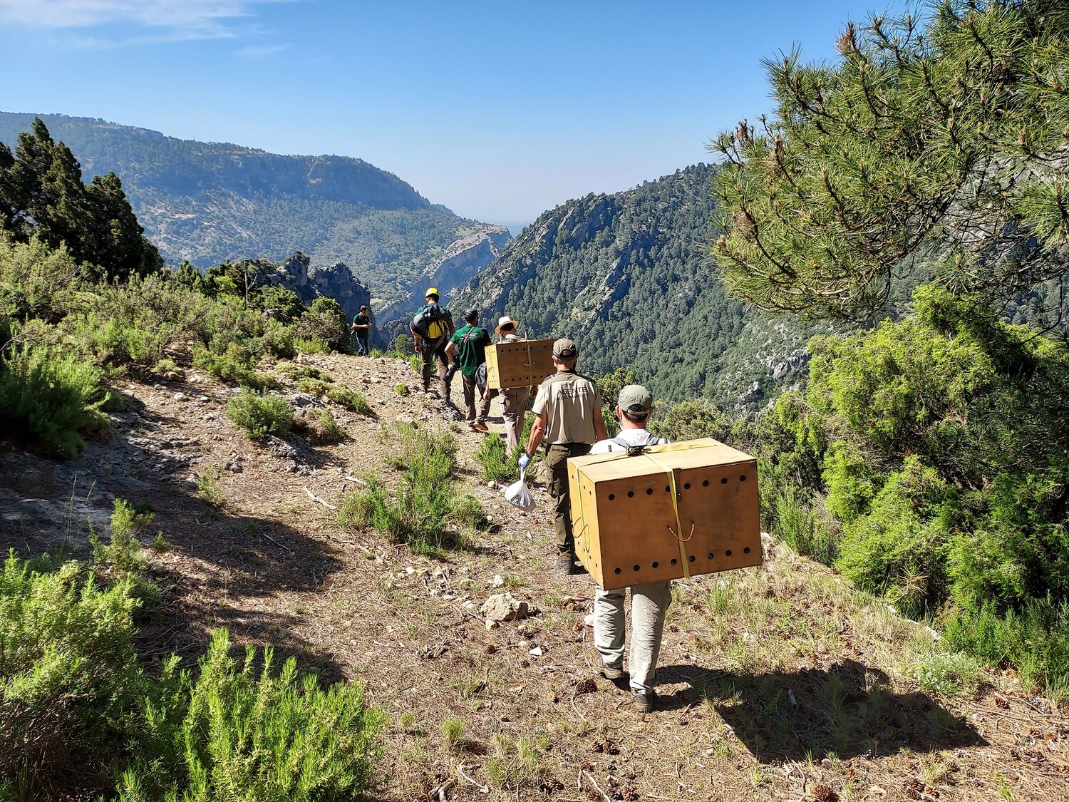 Der am 6. März 2021 im Zoo Berlin geschlüpfte Bartgeier mit dem Namen Quercus konnte – trotz der coronabedingten Einschränkungen – am vergangenen Wochenende seine Reise nach Südspanien antreten. Gestern wurde der Jungvogel aus Berlin gemeinsam mit einem Artgenossen im rund 2.600 km entfernten Sierra de Castril Natural Park in Andalusien in sein neues Zuhause entlassen. Für die Wiederansiedelungsaktion steht nur ein äußerst kleines Zeitfenster zu Verfügung: Mit einem Alter von 90 bis 100 Tagen müssen die Tiere an ihrem zukünftigen Horst ankommen. Ausschließlich in diesem Zeitraum sind sie weit genug entwickelt, um nicht mehr auf die Versorgung durch die Elterntiere angewiesen zu sein, aber noch nicht zu alt, um die neue Umgebung als ihr Zuhause anzuerkennen. In der ersten Zeit werden sie vom Forscher*innen-Team der Vulture Conservation Foundation (VCF) gefüttert, bevor sie schließlich ihre ersten Flüge ins Gebirge wagen werden. In ihrer neuen Umgebung finden sich die in Zoos und Tierparks geschlüpften Bartgeier erfahrungsgemäß gut zurecht. Als Aasfresser ernähren sie sich von toten Tieren und müssen das Jagen nicht erlernen. „Die Wiederansiedelung der Bartgeier zeigt wie wichtig solche Partnerschaften im Artenschutz sind“, erklärt Zoo- und Tierpark-Direktor Dr. Andreas Knieriem. „Mit den dortigen Wissenschaftler*innen eint uns ein gemeinsames Ziel: Faszination für Tier und Natur schaffen und gleichzeitig Lebensräume erhalten und bedrohten Tierarten eine Zukunft sichern“.