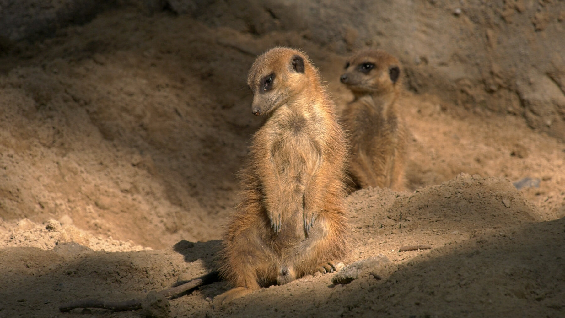 Erdmännchen sind wahre Sonnenanbeter. Und was gibt es denn Schöneres, als sich die warmen Sonnenstrahlen Mitte September aufs Fell scheinen zu lassen!?