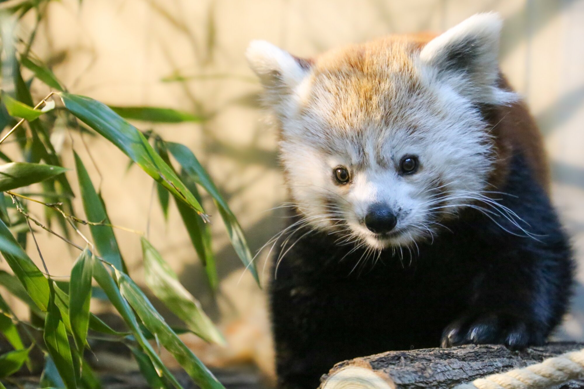 Bis 2002 wurde die neu gestaltete Anlage am "Reich der Jäger" vom Großen Panda Bao Bao bewohnt. Kleine Pandas sind nicht direkt mit den berühmten Großen Pandas verwandt. Sie gehören einer eigenen Familie, den „Katzenbären“, an. Dennoch teilen sie viele Eigenschaften mit ihren Namensvettern. So ernähren sie sich ebenfalls hauptsächlich von Bambus. Auch haben sie – wie Große Pandas – einen verlängerten Handgelenkknochen, den sie wie einen Daumen zum Festhalten von Bambusstangen nutzen. Das natürliche Verbreitungsgebiet der Kleinen Pandas erstreckt sich neben Nordindien auch auf die Bergregionen Nepals, Bhutans, Burmas und Chinas. Die größte Bedrohung für diese sympathischen Tiere stellt der Verlust geeigneter Lebensräume im Himalaya-Gebirge dar.