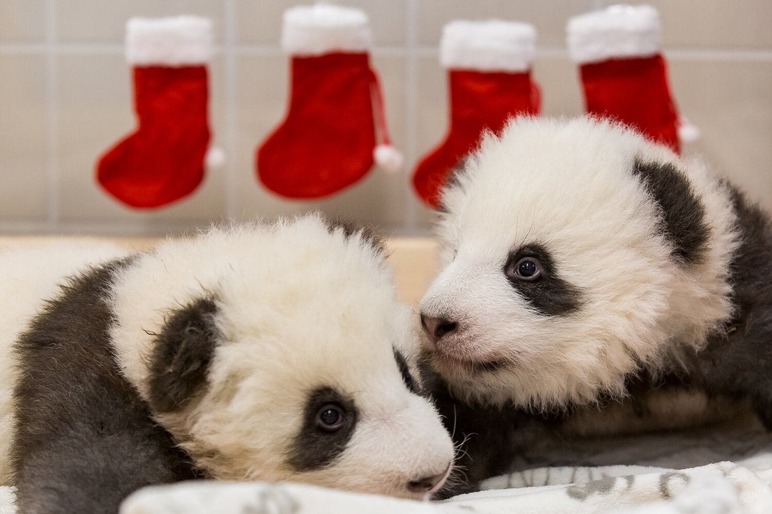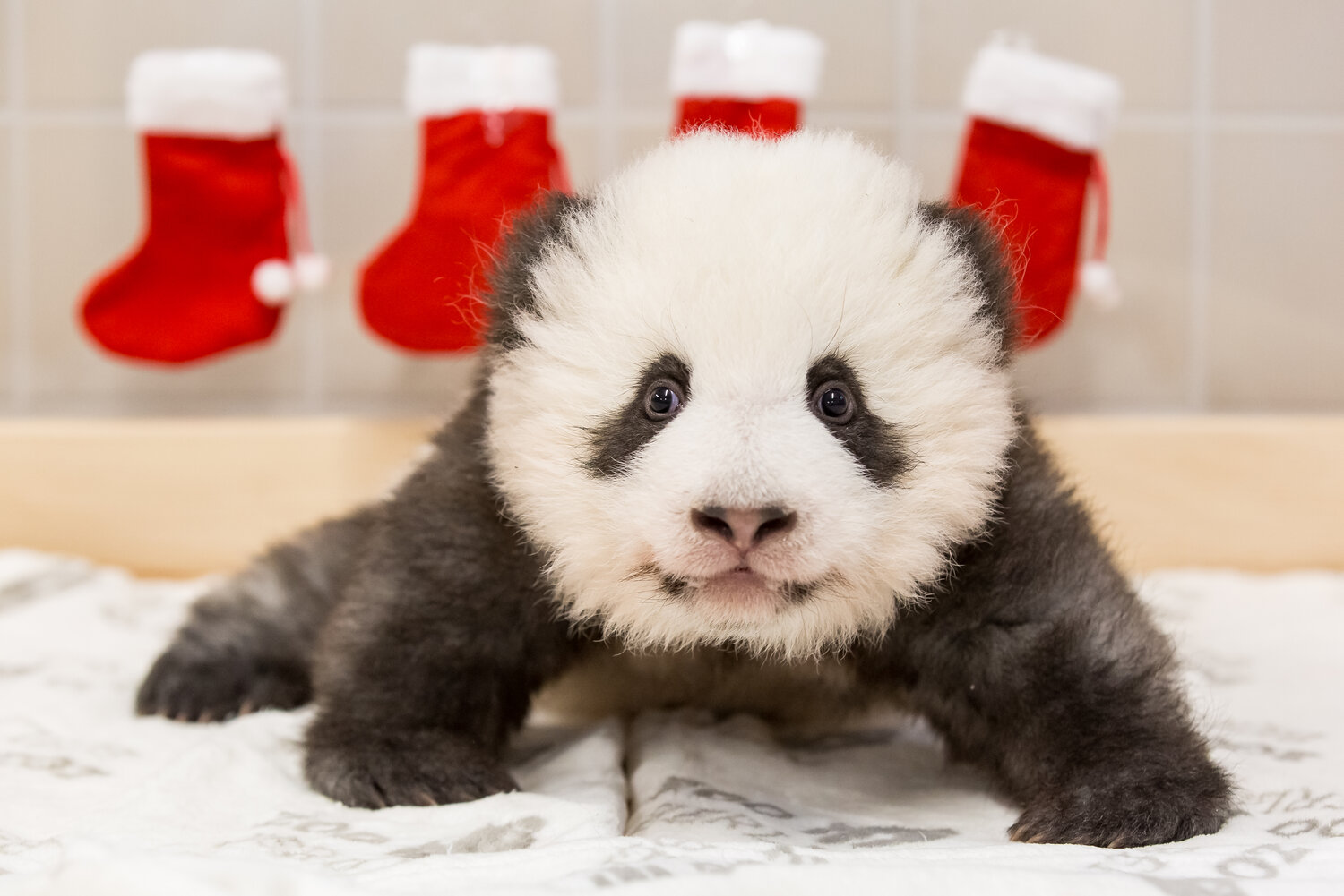Was gibt es bei den Pandas zu Nikolaus? Natürlich stehen bei den gut drei Monate alten Panda-Jungtieren keine Schokolade oder sonstige Leckereien auf dem Speiseplan – auch am Nikolaustag sorgt ausschließlich Muttermilch für die nötige Energie.