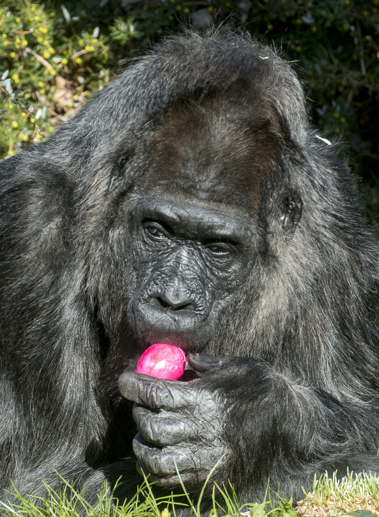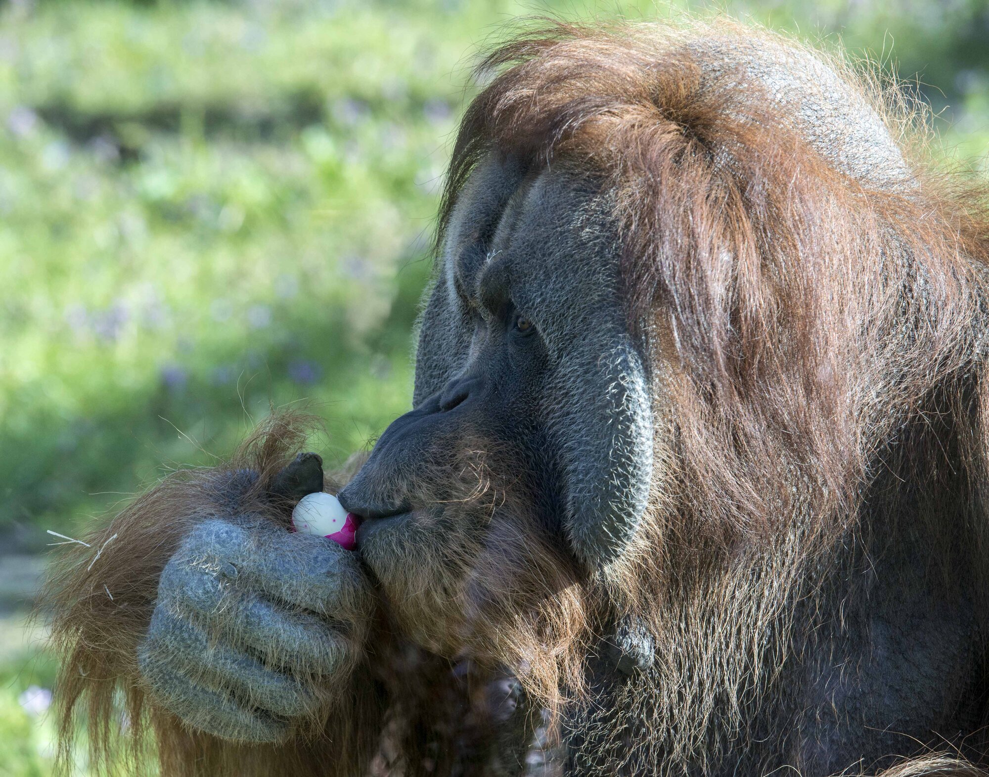 Behutsam nimmt die betagte Gorilla-Seniorin Fatou (62) ein farbiges Ei aus dem Nest, bevor sie es vorsichtig schält. Auch Orang-Utan Mano (42) hat die seltene „Eier-mit-dem-Mund-pellen“-Technik beinahe perfektioniert. Die kleine Eisbärin Hertha im Tierpark konnte jedoch auch nach intensiver Suche kein Osterei finden, dafür hat der Osterhase sie mit seiner Leibspeise – saftigen Karotten – überrascht. Es scheint, als begeben sich zu Ostern nicht nur die Menschen auf die große Suche.