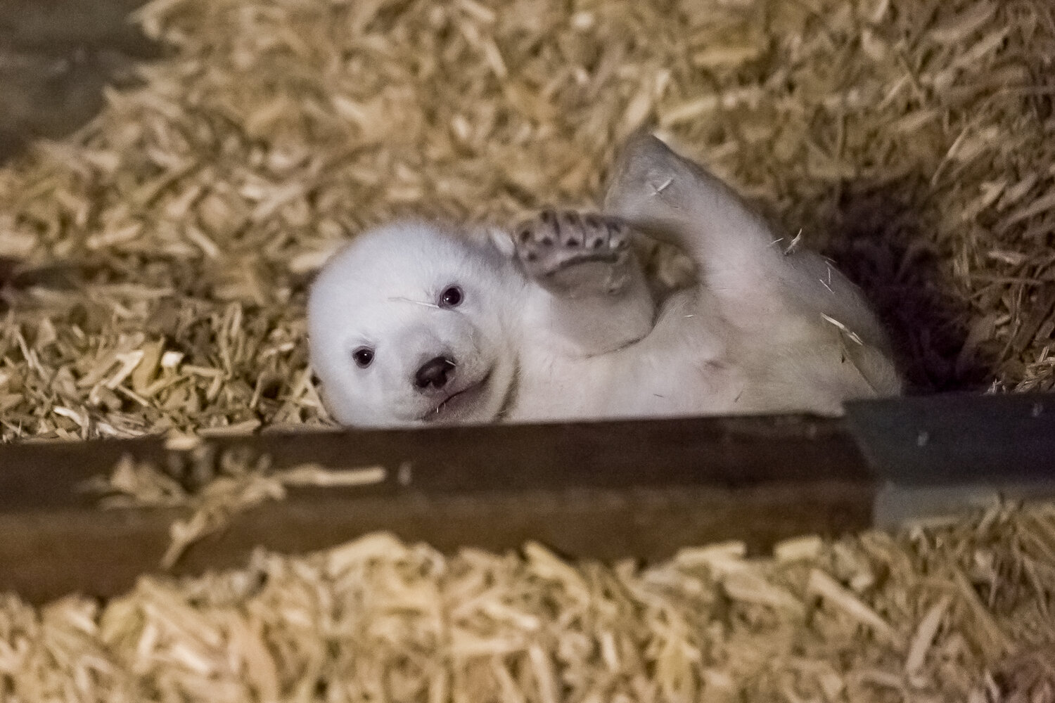 Und die schönste Nachricht zum Schluss: Der Eisbärennachwuchs im Tierpark wächst und gedeiht. Nach 50 Lebenstagen versucht das schneeweiße Bärchen in der Wurfhöhle so langsam auf alle vier Beine zu kommen. Auch wenn es noch nicht immer klappt, funktioniert der Purzelbaum mittlerweile hervorragend. Das Geschlecht bleibt noch Bärchens Geheimnis.