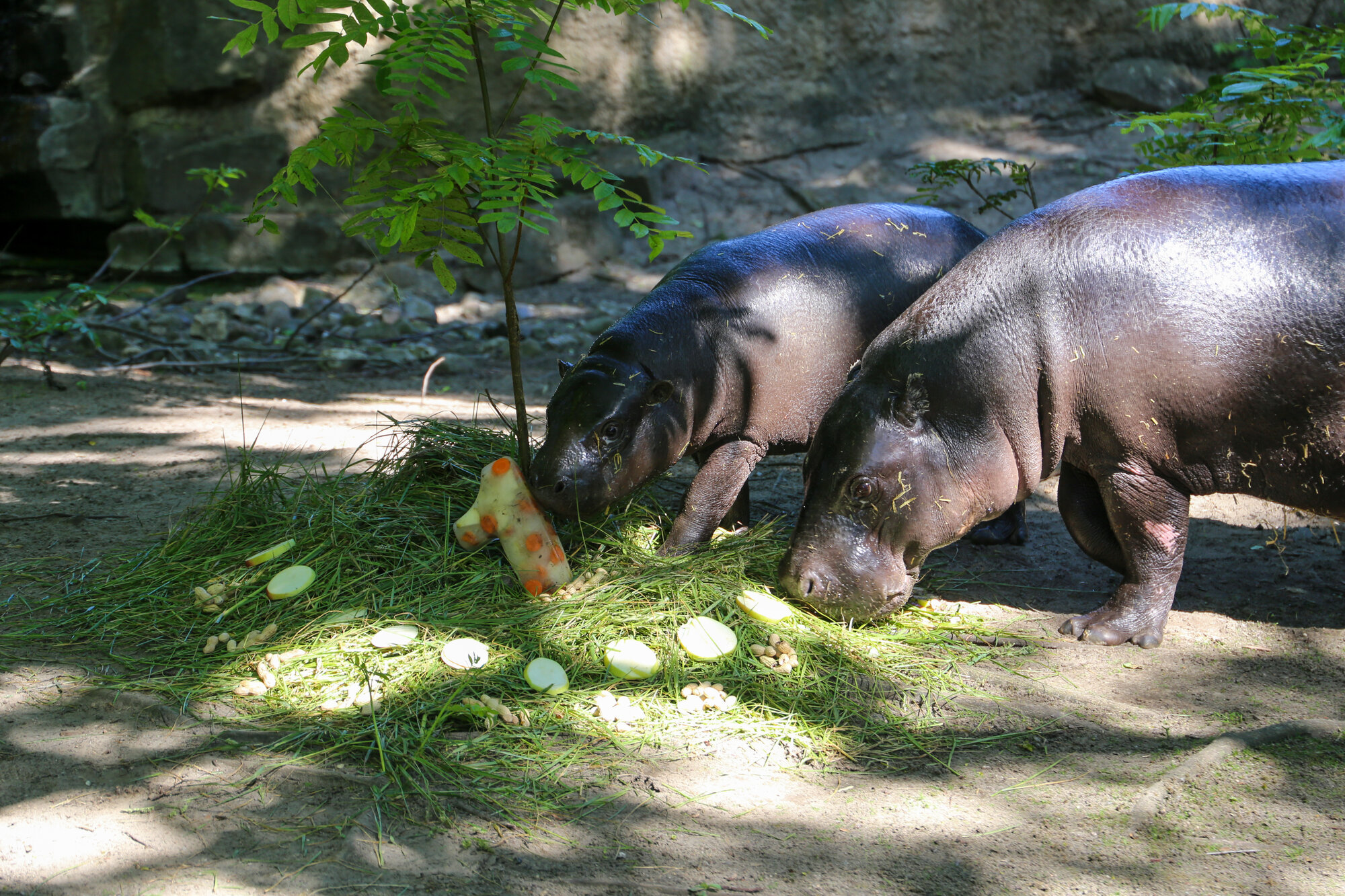 Mit Apfelstücken, knackigen Karotten und einer Handvoll Erdnüsse wurde heute im Zoo Berlin ein ganz besonderer Geburtstag gefeiert: Zwergflusspferd Toni wird 1 Jahr alt! Innerhalb eines Jahres hat sich das niedliche Berliner Mini-Hippo zu einer Artenschutz-Botschafterin mit weltweiter Fanbase entwickelt.