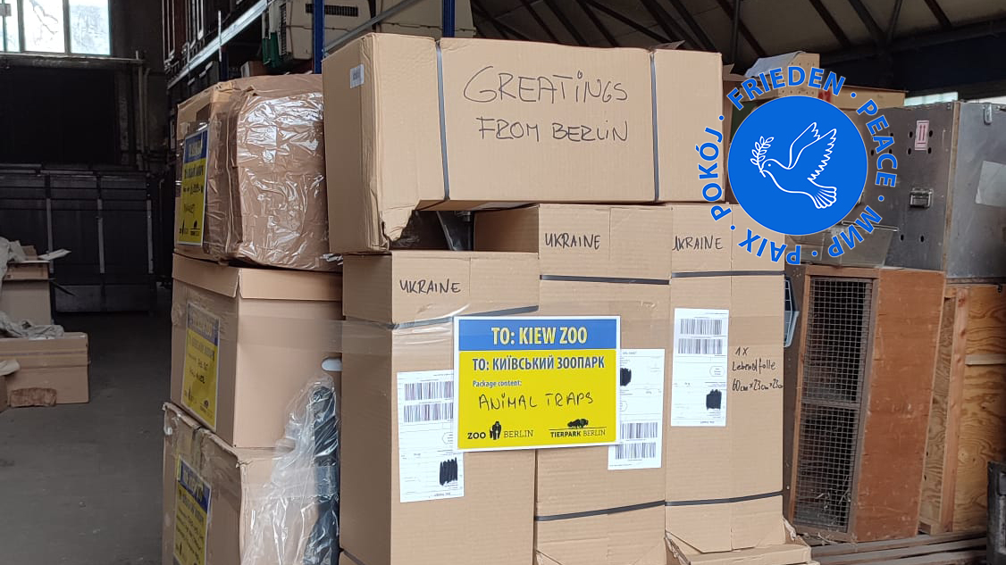 Während unsere Kolleg*innen in der Ukraine seit Wochen Tag und Nacht für ihre Schützlinge da sind, arbeiten wir weiter mit Hochdruck daran, effektive Hilfe zu leisten. Zu dieser Stunde werden die letzten Paletten mit speziellen Futtermitteln, tierärztlichem Equipment und Nahrungsmitteln für das Team in Kiew verpackt. Auch die anderen Zoos in der Nähe sowie die zurückgelassenen Katzen und Hunde in der Region können dank der zahlreichen Spenden versorgt werden.