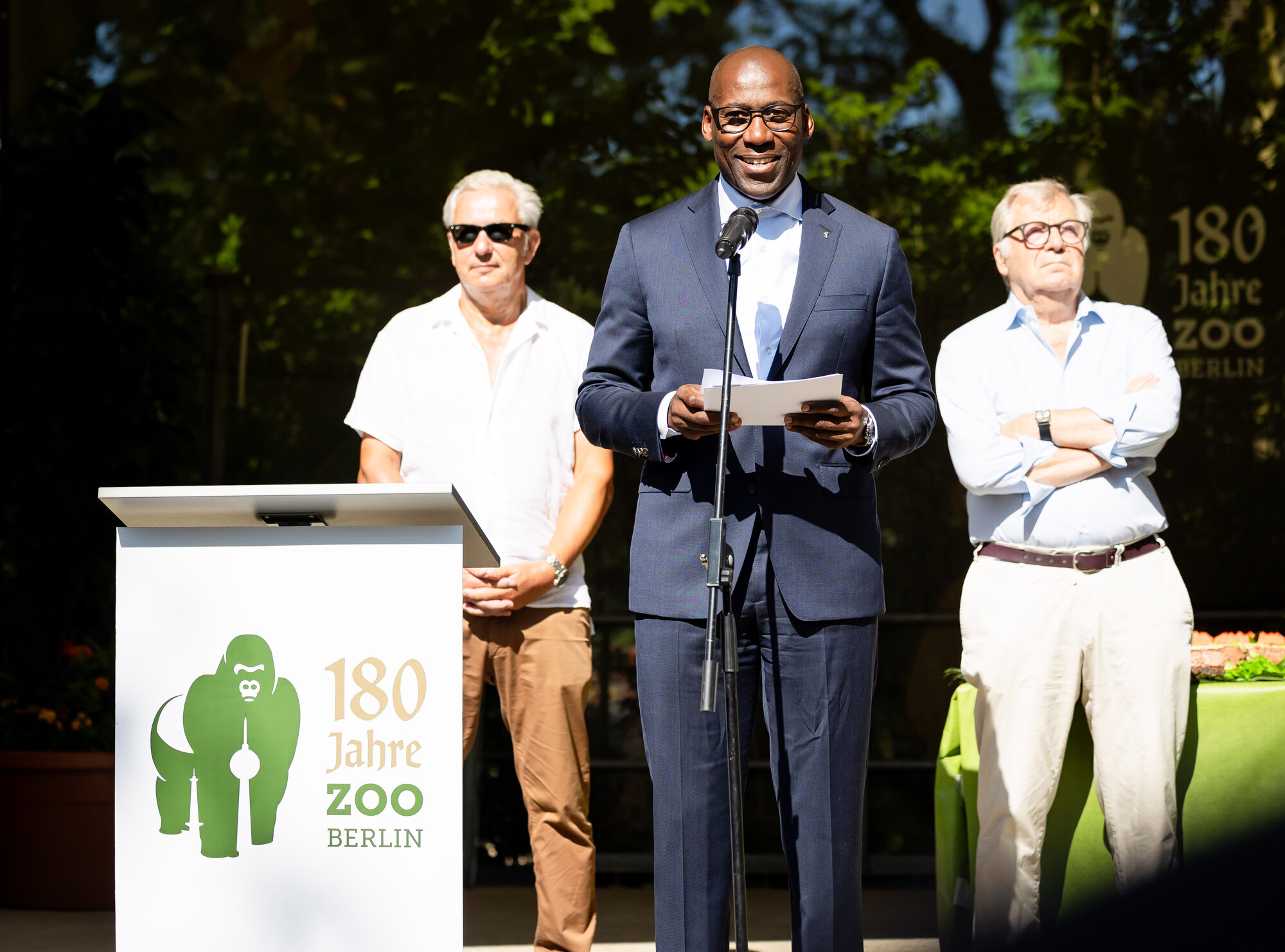 Der Regierende Bürgermeister von Berlin, Kai Wegener, lässt dem Zoo Berlin durch seinen Senator Joe Chialo herzliche Geburtstagswünsche übermitteln: „Ein Besuch im Zoo Berlin ist für mich immer etwas Besonderes. Im Zoo Berlin trifft Artenschutz auf Erholung, hier treffen sich Jung und Alt, hier finden Berlinerinnen und Berliner sowie Touristen aus aller Welt zusammen. Der Zoo Berlin vereint sie alle in der Begeisterung über die Begegnungen mit den Tieren. Ich gratuliere dem Zoo Berlin herzlich zum 180. Geburtstag.“