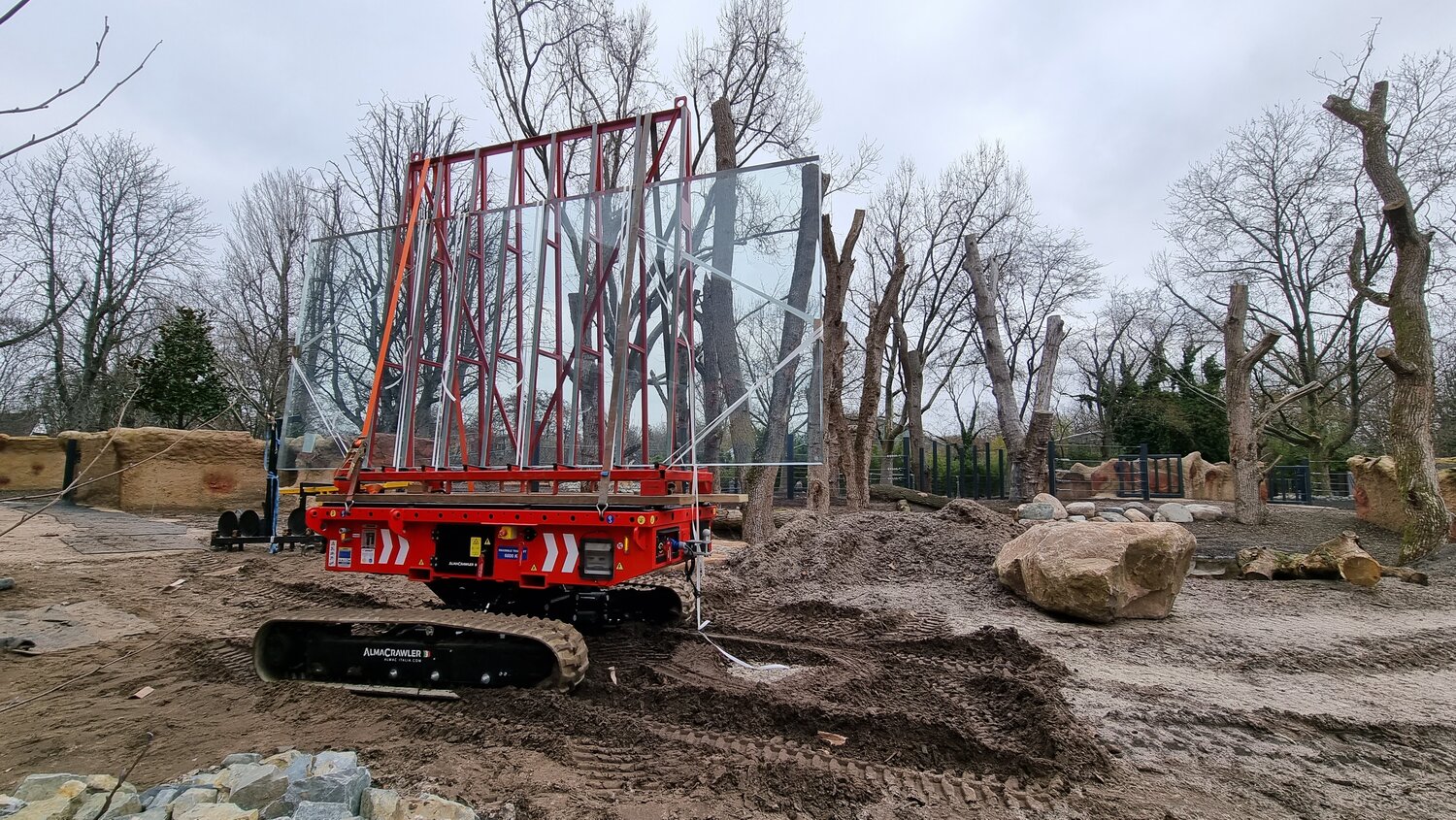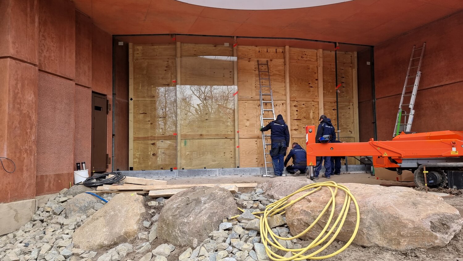Diese Woche werden insgesamt elf große Panorama-Scheiben eingesetzt – mit teils über 1300kg Gewicht pro Scheibe ist das kein „leichtes“ Vorhaben.