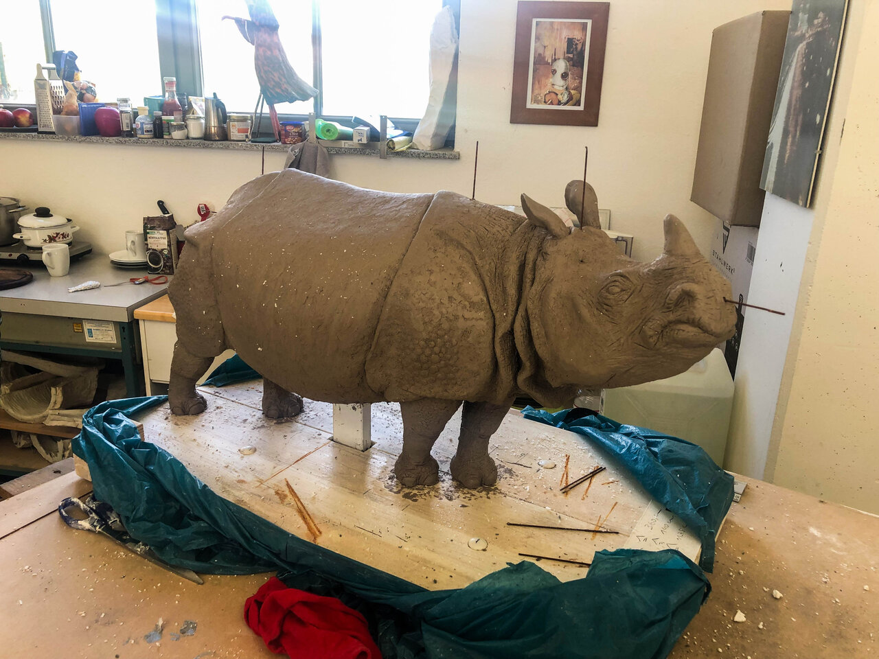 Die Reise begann mit einer intensiven Inspirationsphase. Als Ausgangspunkt diente Rico Rensmeyer zahlreiches Bildmaterial von existierenden Bronzeplastiken und echten Nashörnern. Nach Sichtung des Bildmaterials war es an der Zeit für einen Zoo-Besuch um einen Blick auf das lebende "Objekt" zu werfen. Unsere Panzernashorndame Bett diente dem Bildhauer mehrfach als stattliche Muse. Durch Fotodokumentationen konnten Anatomie, Bewegung und Oberflächenbeschaffenheit von Betty analsiert werden. Aus dem Naturstudium heraus entwickelte sich schließlich eine Charakterstudie. Hier wurde unter anderem die Anmutung des Tieres erörtert. Der Charakter kristallisierte sich als zugänglich, dynamisch, majestätisch, aber nicht eitel, heraus. Diese Eigenschaften galt es nun künstlerisch umzusetzen.