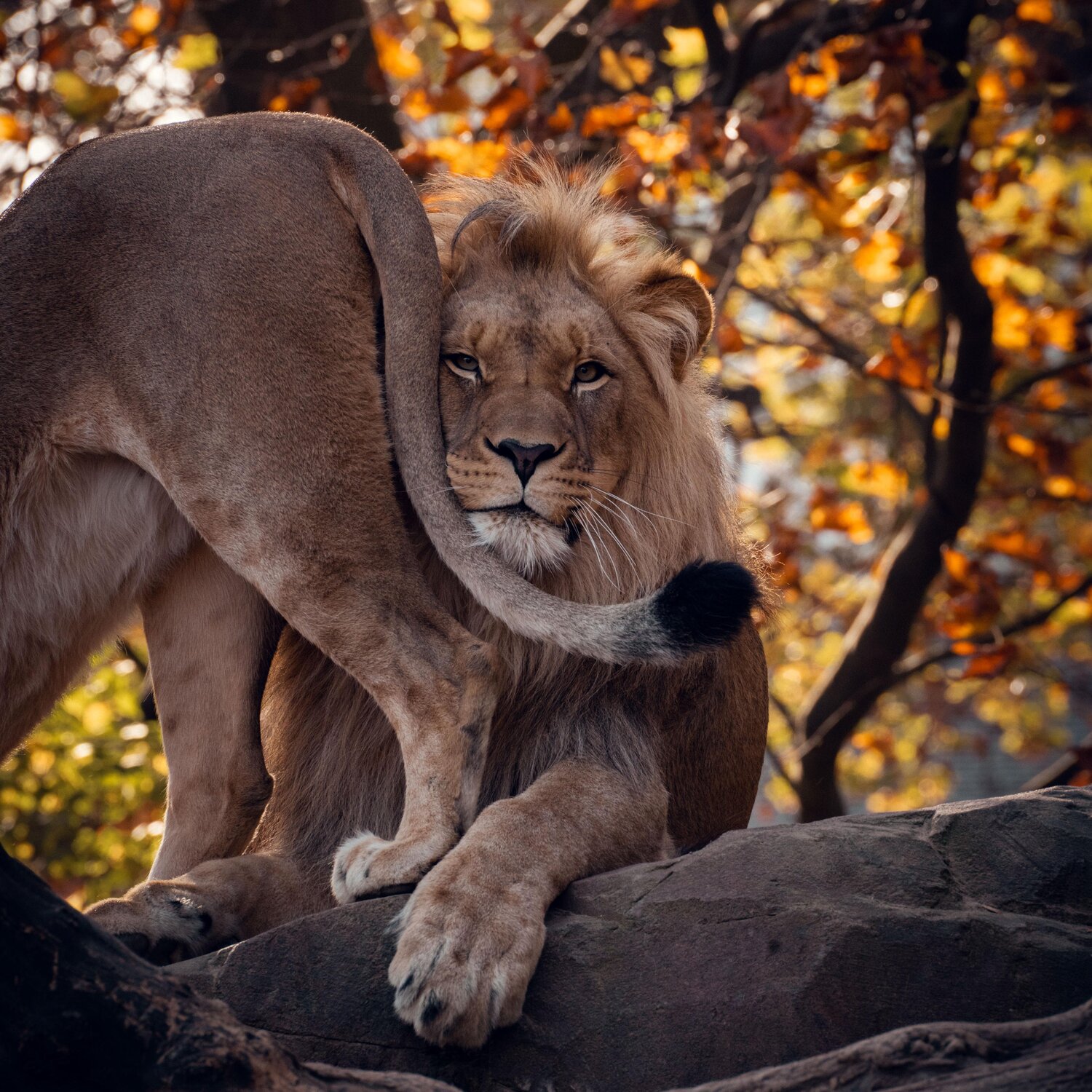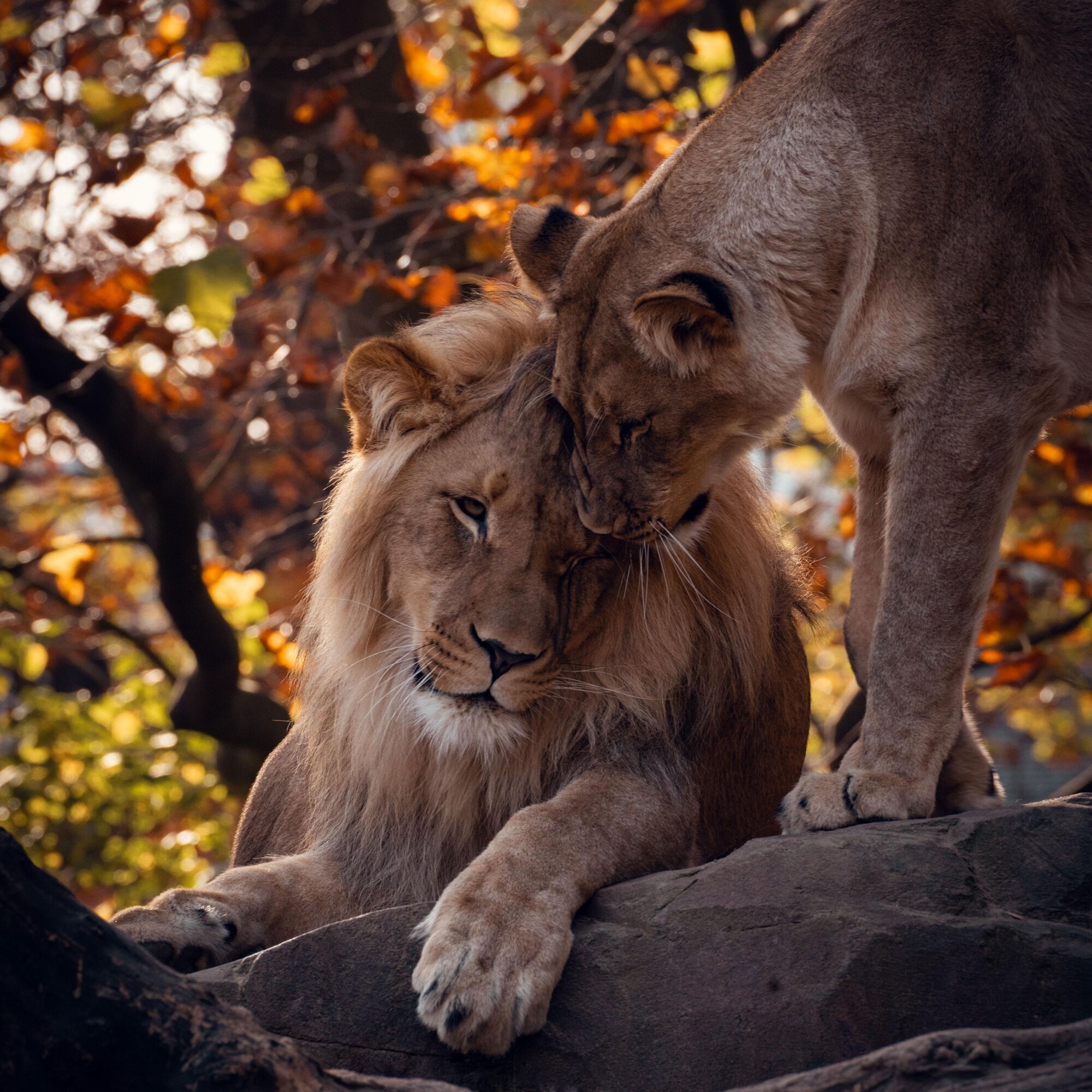 Wie man sieht, hat die Kuschelsaison auch bei unseren Löwen Einzug gehalten. Kein Wunder, denn die Großkatzen sind sehr soziale Tiere. Als einzige Katzenart leben Löwen in großen Rudeln gesellig zusammen und beschützen sich gegenseitig.