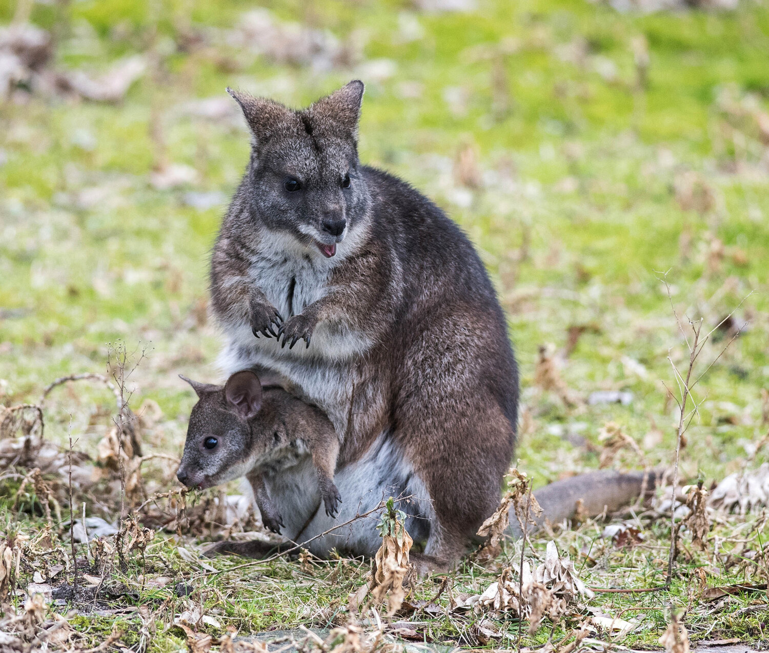 Denn bis das Jungtier selbstständiger wird, dauert es noch ein bisschen. Die ersten 30 Wochen nach der Geburt verbringt der Nachwuchs im Beutel und wird dort über die Milchzitzen gesäugt.