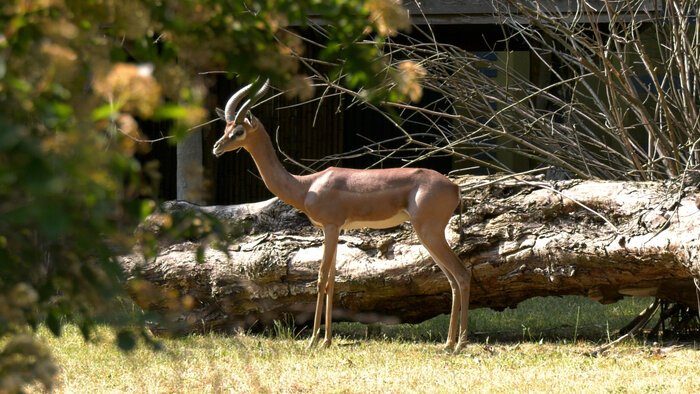 04.09.2023 NewsGrazil, graziler, GiraffengazelleDie auch Gerenuk genannten, äußerst zierlichen Paarhufer benötigen kaum Trinkwasser. Ihren Bedarf decken sie über ihre Leibspiese – nämlich Laub. Mehr erfahren