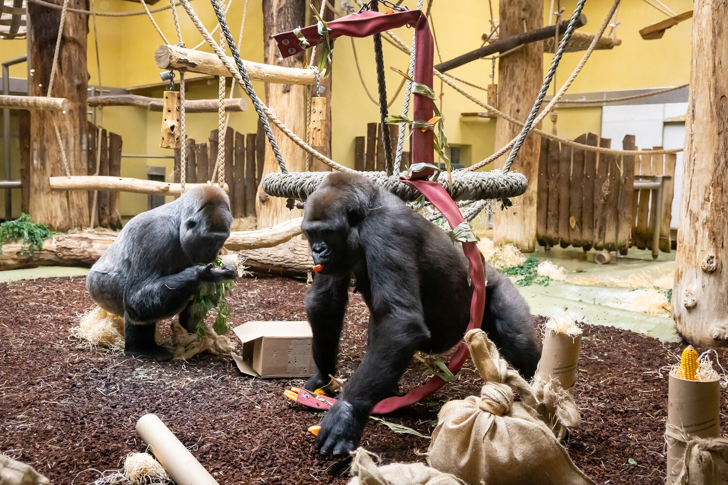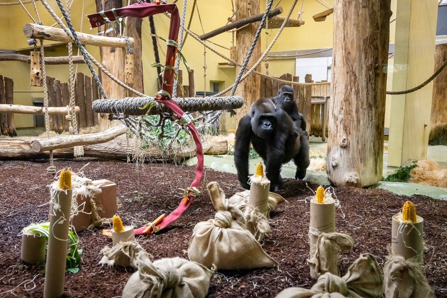 Among other things, the animals were delighted to receive parcels filled with wood wool, pellets and corn on the cob. There were also wooden toys with raisins hidden inside. Initially a little shy on Mummy Bibi's back, the birthday girl gradually dared to enjoy the surprise and nibbled on the treats.