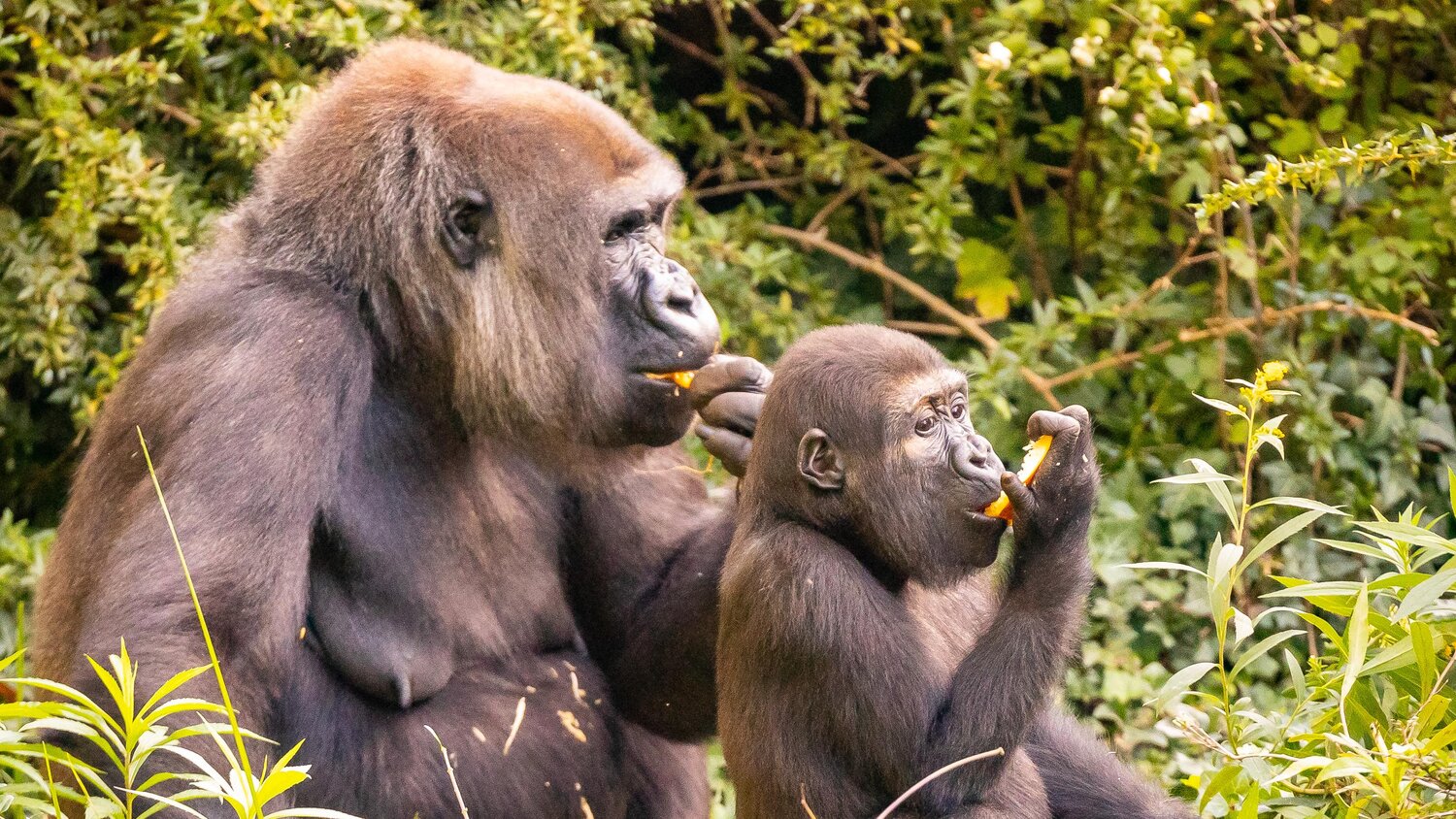 In fact, communal eating is very important for young gorillas, as it is through imitation that these adorable youngsters learn important natural behaviours. So if mum does it, Tilla does it too!